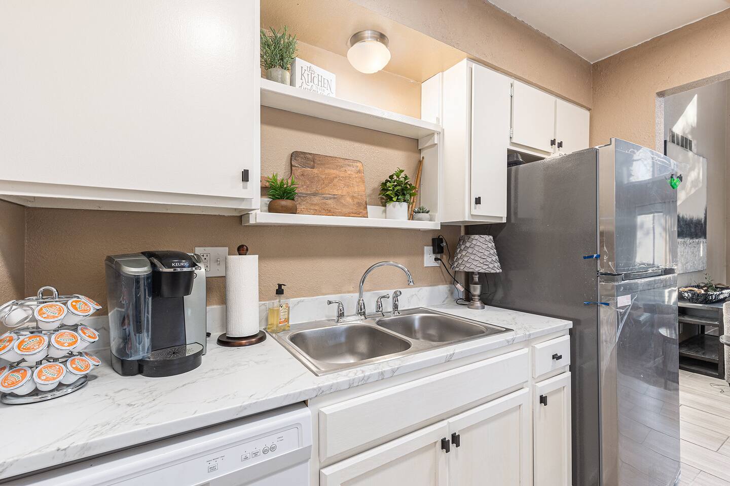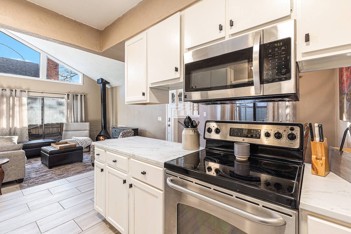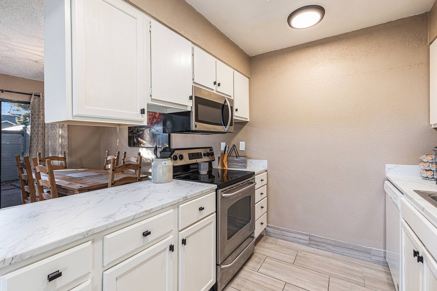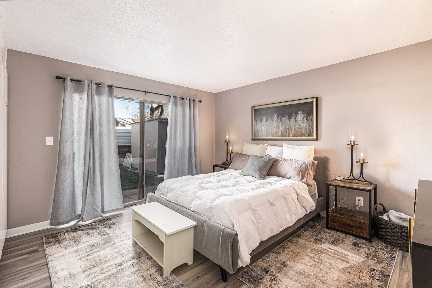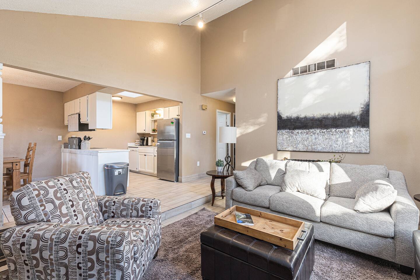 Welcome to this cozy 2 bed 1 bath duplex home in Greeley! Fully fenced front, side and back for privacy the backyard invites relaxation. Inside find a stylish living room with an electric fireplace, two comfortable bedrooms, and a fully stocked kitchen. Ideal for short getaways or longer stays for work etc, this home offers a perfect blend of comfort and convenience